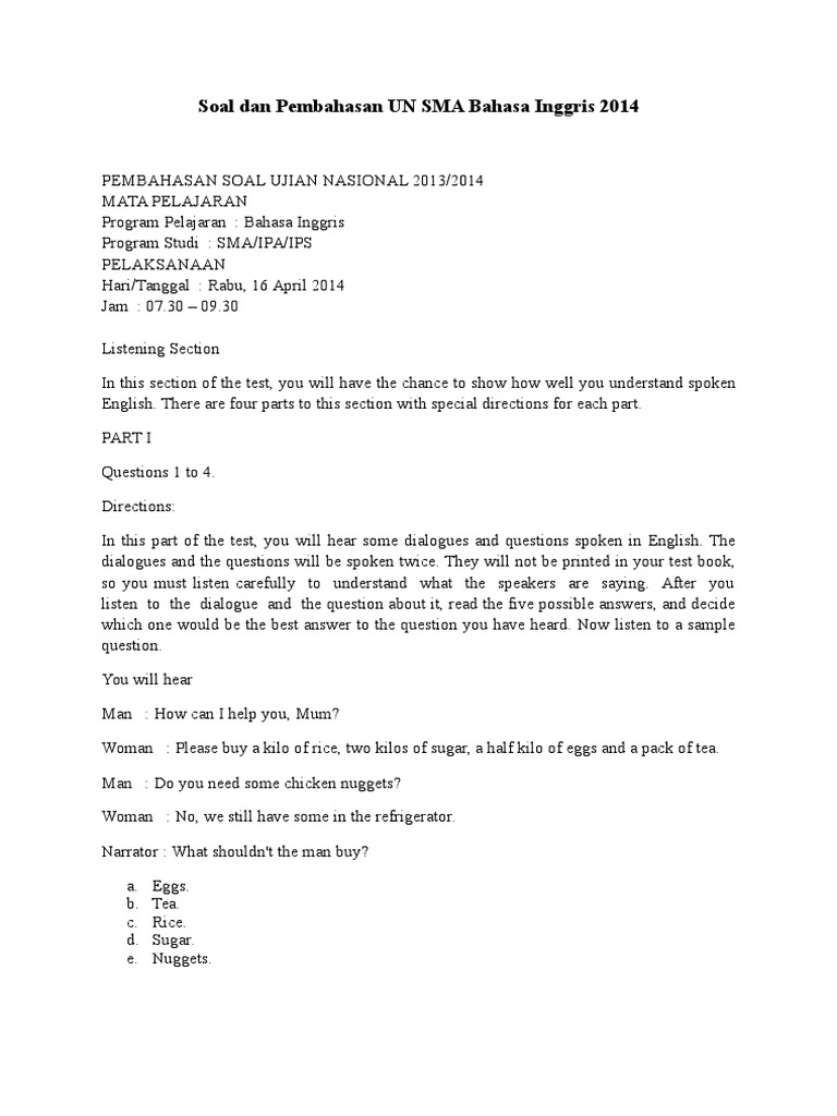 Doc Contoh Soal Un Bahasa Inggris Sma Khoerun Nisa Academia Edu
